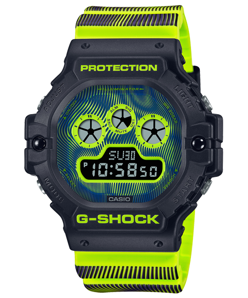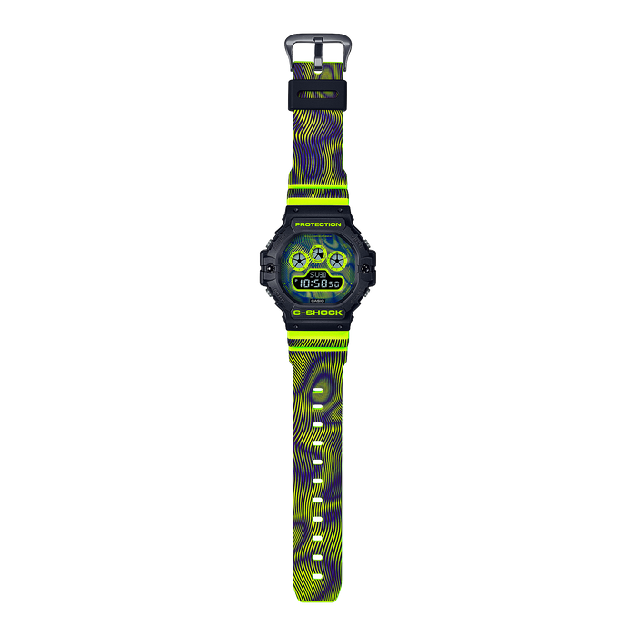 ¡Salta a un vórtice espaciotemporal! El impacto de los relojes Time Distortion es tan potente como el propio G-SHOCK. La correa y la esfera están impresas con patrones que distorsionan de manera divertida el tiempo y el espacio con vívidos colores fluorescentes que te transportarán al mundo de la ciencia ficción. Elije entre el icónico DW-D5600, el DW-5900 con su diseño de triple gráfico o el DW-6900 con su distintivo diseño de botones delanteros.