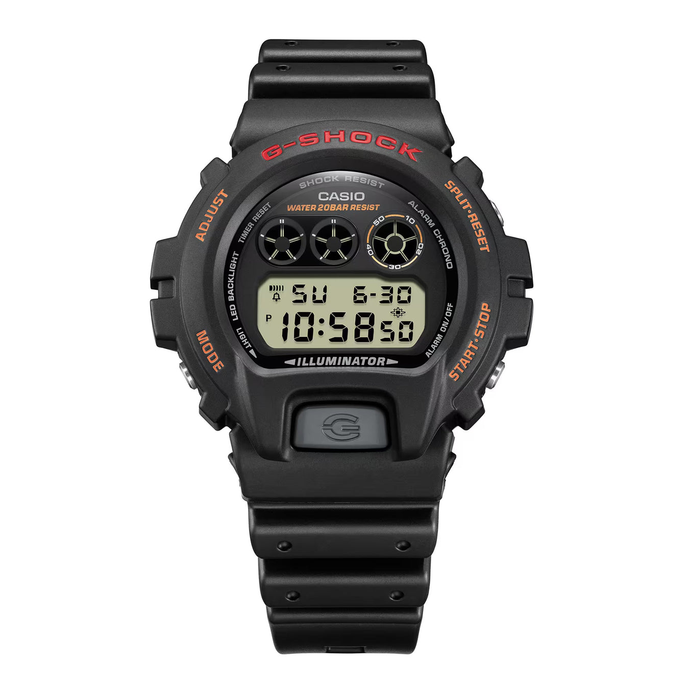De G-SHOCK, la marca de relojes dedicada a la búsqueda de la dureza absoluta. Este clásico de G-SHOCK de la línea 6900 ganó popularidad en la década de 1990, ocupando su lugar como un ícono de la época. La gran pantalla LCD y la retroiluminación LED hacen de este diseño altamente versátil un excelente compañero para una variedad de estilos, desde practicidad utilitaria hasta tendencias urbanas y moda deportiva.