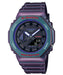 El nuevo G-SHOCK celebra la determinación de alcanzar los niveles más altos, combinando estilo y funcionalidad. Su pintura polarizada en morado y verde cambia según el ángulo de visión, mientras los detalles en naranja y los gráficos de la pantalla LCD recrean la emoción de los videojuegos en el mundo real.