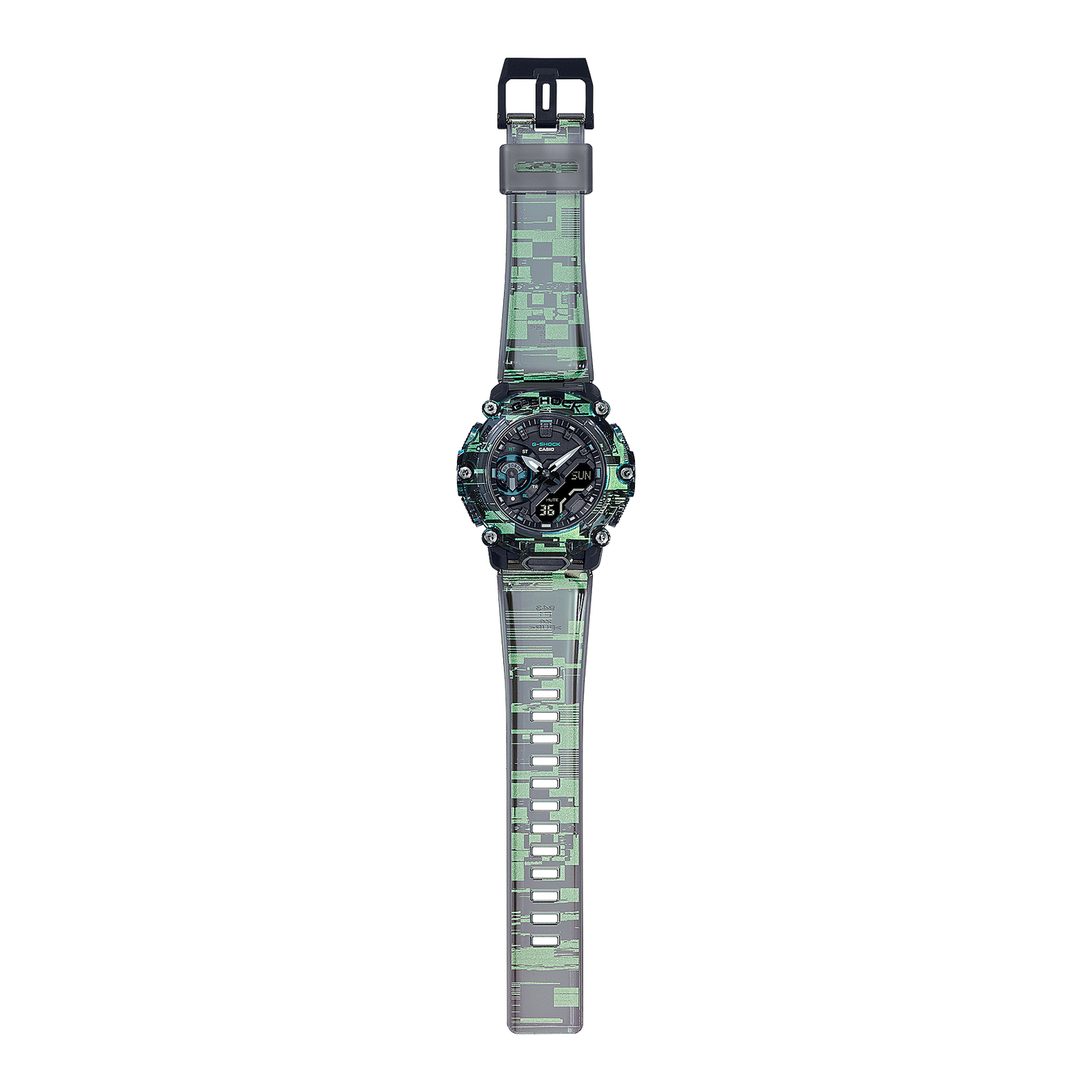 ¡Electrifique su estilo! Presentamos un nuevo y espectacular G-SHOCK versión iridiscente, un maravilloso glitch digital, estampado multiángulo y resina traslúcida.