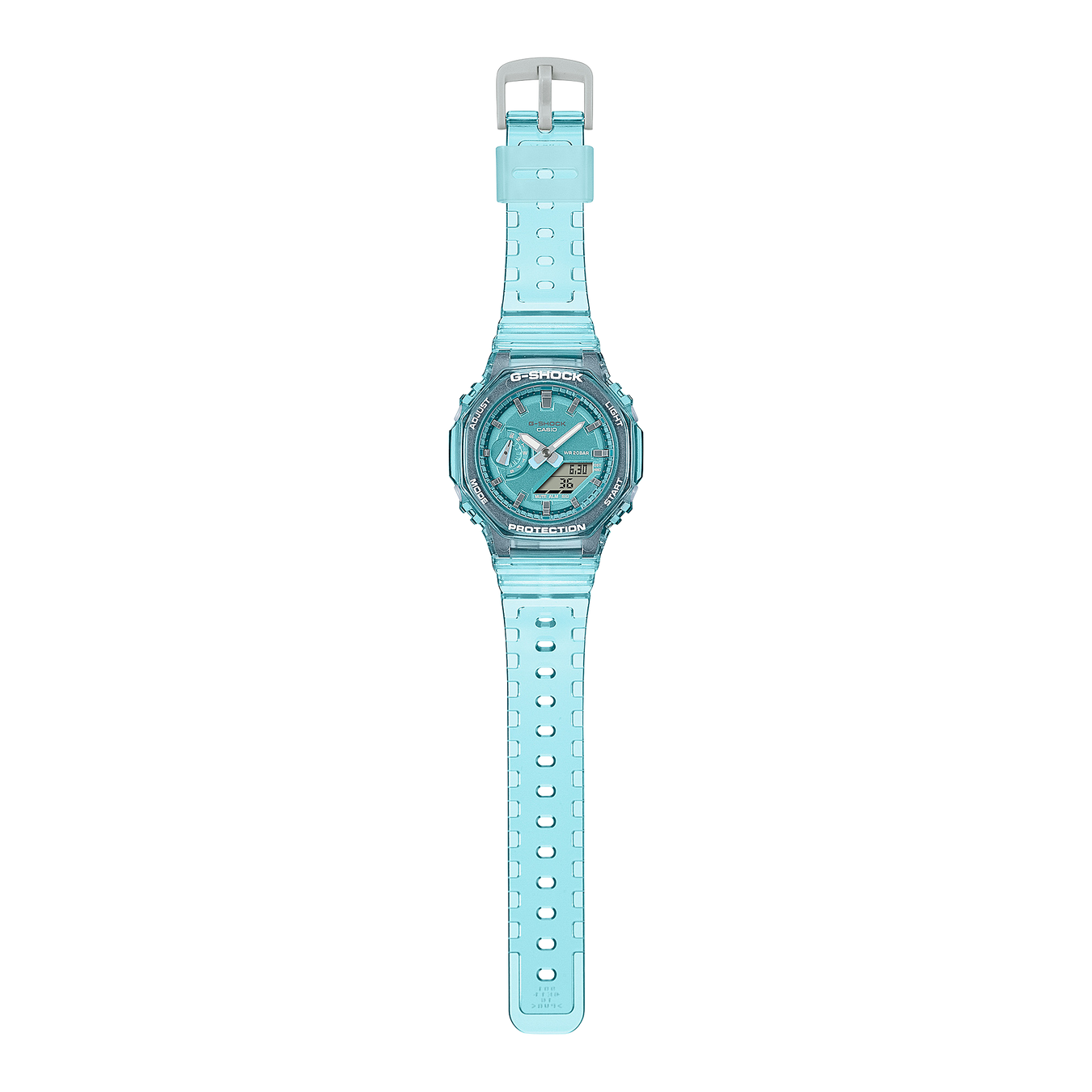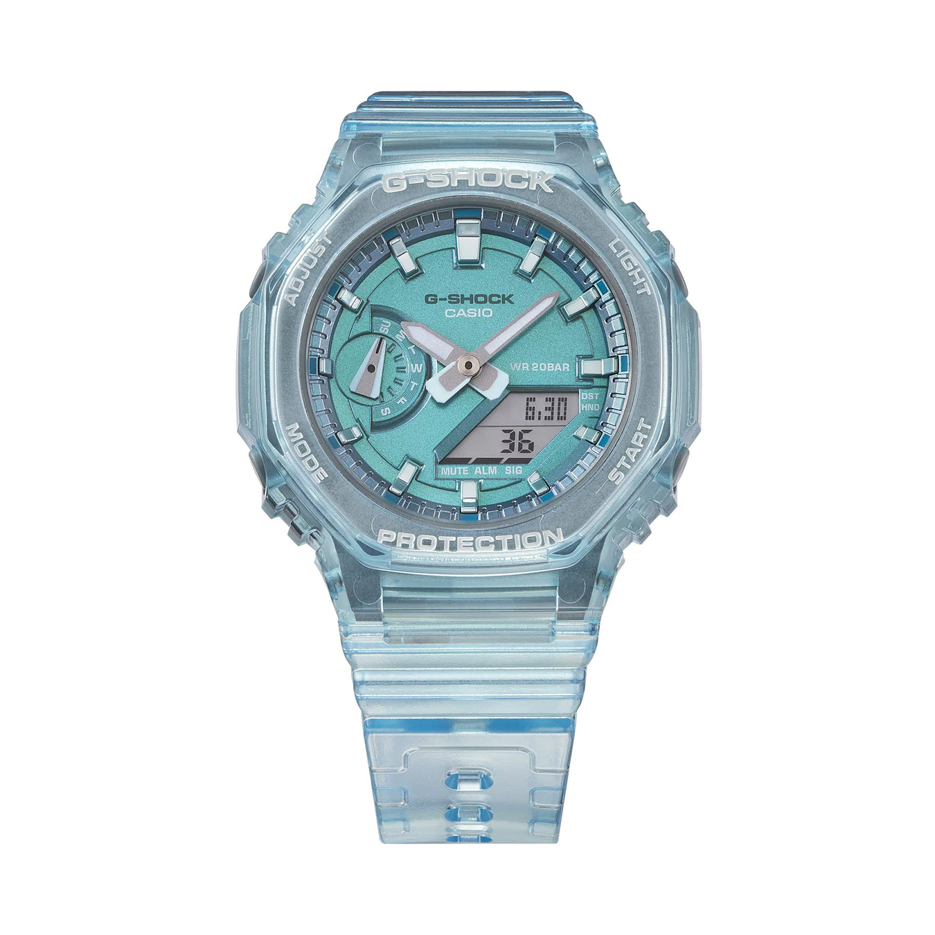 Ponga un toque especial y metálico con la siempre popular combinación analógica-digital GA-2100 en un perfil más fino y compacto. Diseños metálicos translúcidos en una selección de colores para relojes versátiles que combinan con cualquier prenda, durante todo el año. Las líneas indexadas tratadas con un acabado de vapor semimate dan vida al efecto metálico transparente.