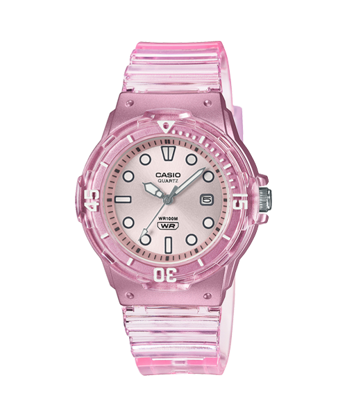 Sumérjete en el deslumbrante brillo de un reloj analógico compacto con correa y bisel translúcidos.